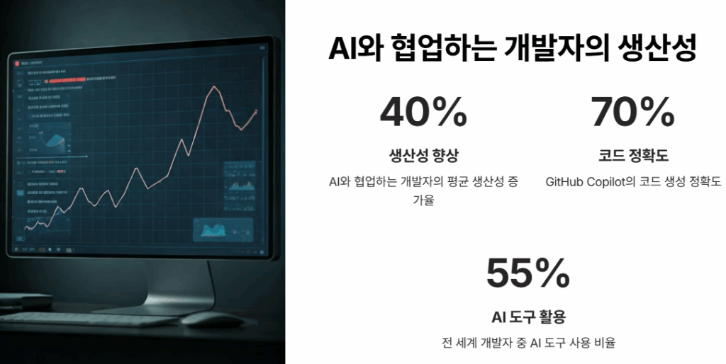 여러분은 “AI가 개발자를 대체할까?”라는 질문을 들어본 적 있나요? 이 질문은 요즘 개발자들 사이에서 뜨거운 화제예요. 하지만 사실을 말하자면, AI는 개발자를 대체하는 게 아니라 개발자의 역할을 재정의하고 있어요. 과거에는 코드를 한 줄씩 쓰는 게 주된 일이었지만, 이제는 AI가 코드를 생성하고 개발자는 그 흐름을 조율하는 AI 오케스트레이터로 변신하고 있죠. 통계에 따르면, 2025년 기준으로 전 세계 개발자의 55%가 이미 AI 도구를 활용하고 있다고 해요(출처: Neon State of AI 2025 설문조사).