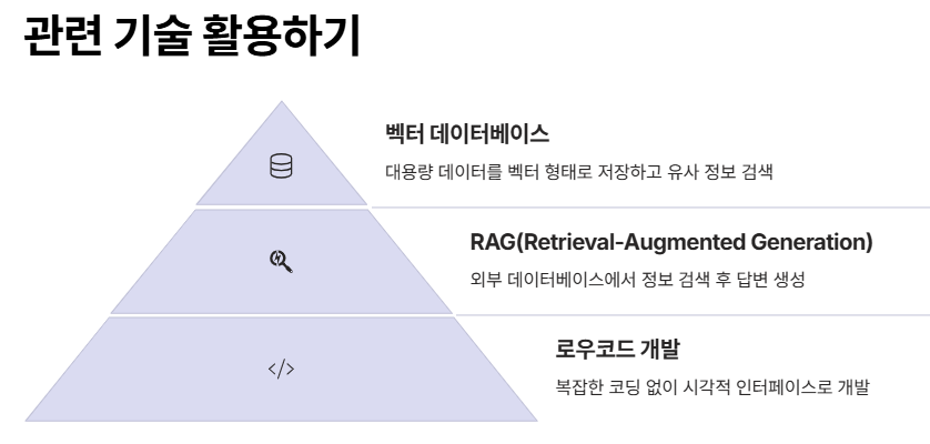 이처럼 벡터 데이터베이스, RAG, 로우코드 개발 기술을 익혀두면, 프롬프트 엔지니어링의 효과를 극대화할 수 있어요.