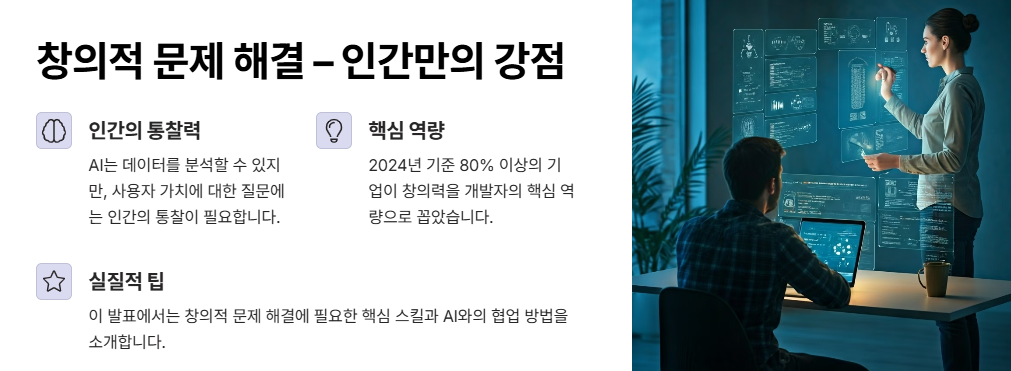 창의적 문제 해결은 AI 시대에도 개발자의 가장 큰 경쟁력이에요.