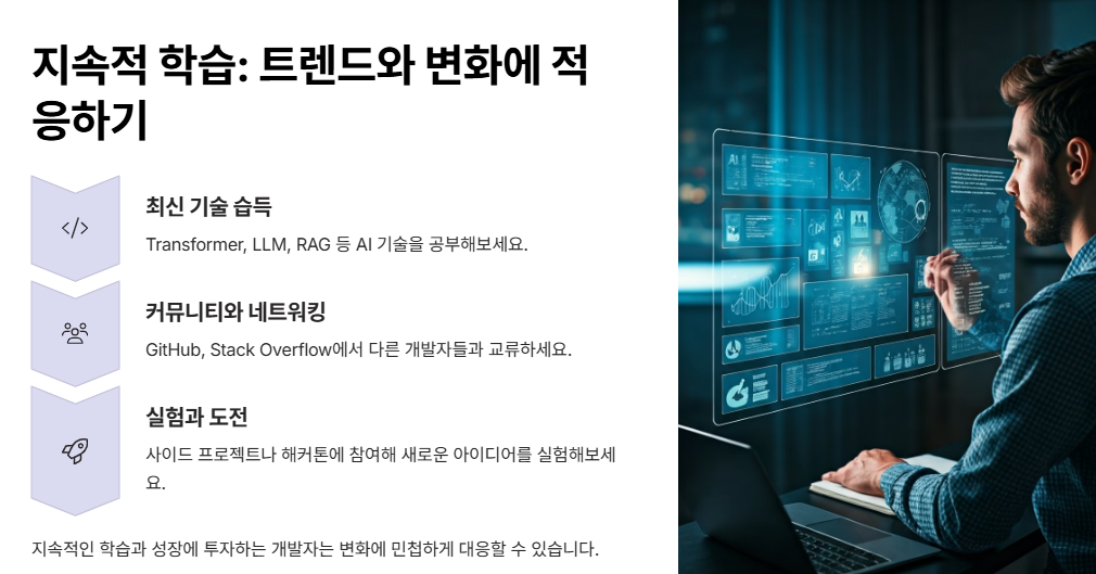 지속적인 학습과 성장에 투자하는 개발자는 변화에 민첩하게 대응할 수 있고, AI와의 협업에서도 더 큰 시너지를 낼 수 있습니다.